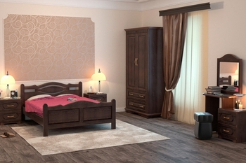Узкий, но вместительный распашной шкаф для одежды, туалетный столик, занимающий минимум пространства и двуспальная кровать, которую можно при желании сделать шириной всего 140 см. делают спальню "Орден" отличным решением для маленьких комнат.