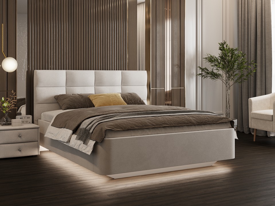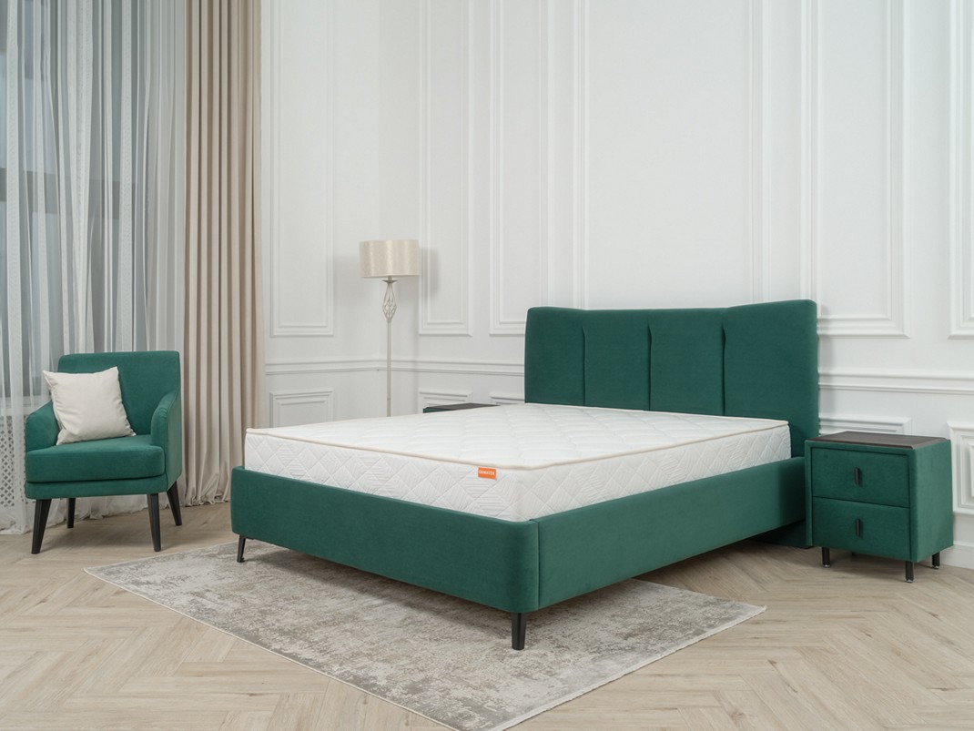 Monro - выбор для тех, кому важно, чтобы кровать создавала ощущение "своего места", а не просто стояла в комнате. Высокое изголовье делает спальню более камерной, что особенно ценно в светлых больших пространствах, где без такого приёма интерьер кажется безликим.