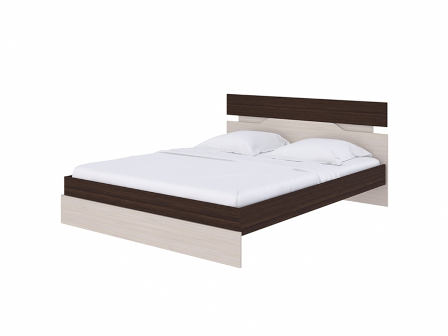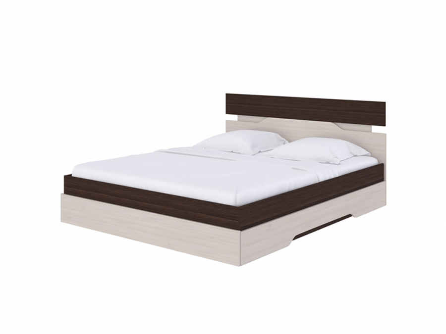 Интегрированное основание с выбором глубины залегания: 5 или 10 см. Матрас при нижнем залегании — 16–20 см, при высоком — 11–16 см. Подъёмного механизма и ящиков нет — это чистая конструкция без компромиссов в пользу хранения. Обратите внимание: рама добавляет +48 см к ширине — модель рассчитана на просторную спальню.