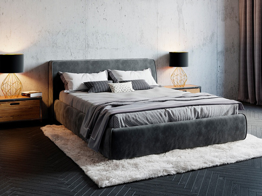 Стиль лофт, изголовье 30 см в глубину, обивка задней стенки - кровать можно ставить по центру комнаты.