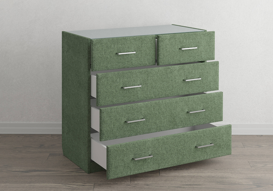 Nolan создан для тех, кто хочет комод под конкретный интерьер, а не подбирает интерьер под комод. Широкий выбор фактур и цветов, скос под плинтус чтобы поставить вплотную к стене, пять ящиков с бесшумными доводчиками и опциональная стеклянная столешница, которая защищает поверхность и добавляет завершённости образу.