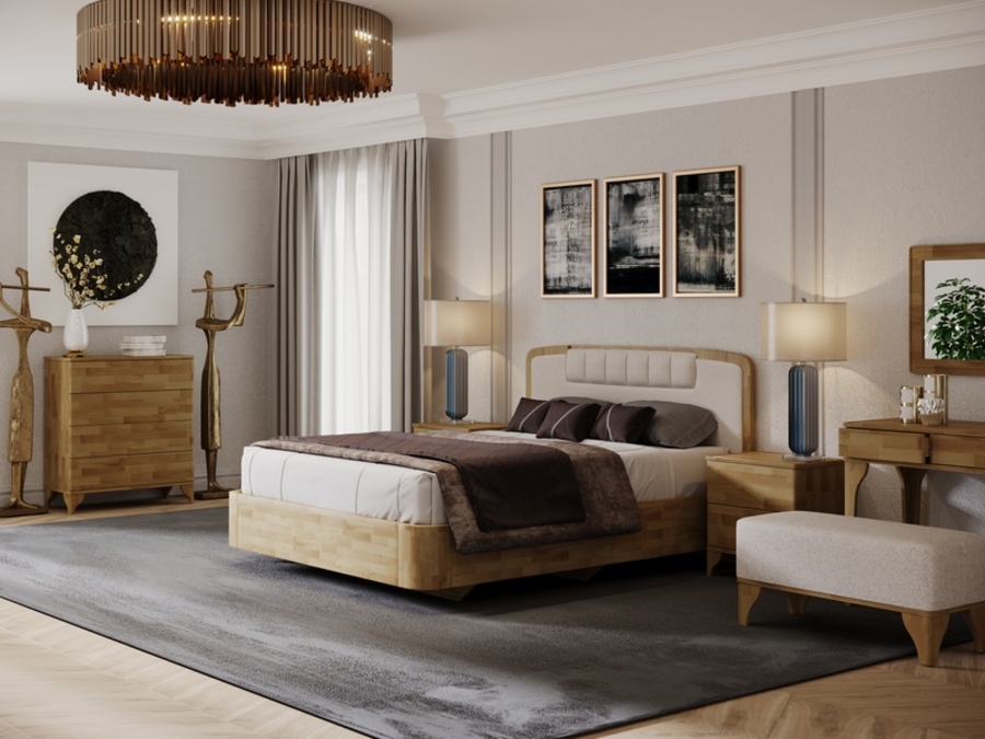 Сочетание изголовья Gatsby и царгового пояса Grace добавит интерьеру королевского величия. Изголовье идеально сочетает в себе роскошный дизайн и аристократическую лаконичность форм, а также выгодно подчеркивает естественную красоту и премиальность массива бука или дуба.