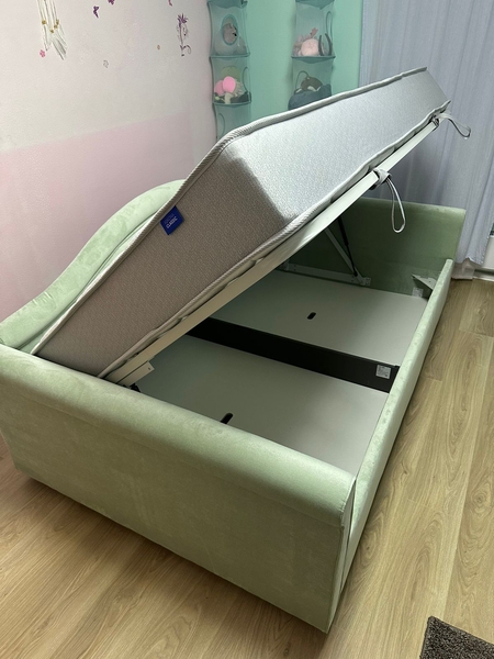 Модель может быть укомплектована как разборным, так и неразборным металлическим основанием с ламелями. По желанию добавляется подъемный механизм с бельевым ящиком — практичное решение для хранения постельных принадлежностей и игрушек.