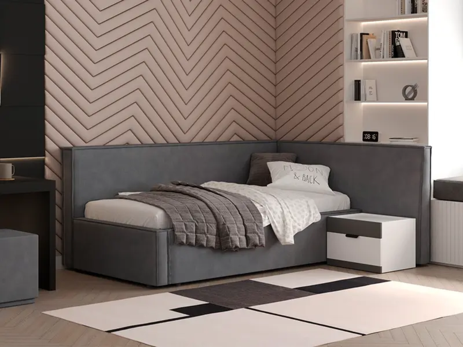 - Модель имеет боковой вылет, который решает проблему размещения тумбочки в комнате подростка. Стильное и эффектное решение понравится самому требовательному клиенту