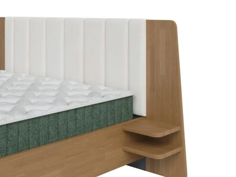 ➢ Встроенные боковые полки на вылетах изголовья — уникальное решение, объединяющее функциональность и дизайн, позволяющее удобно разместить необходимые мелочи и создать завершённый образ мебели.